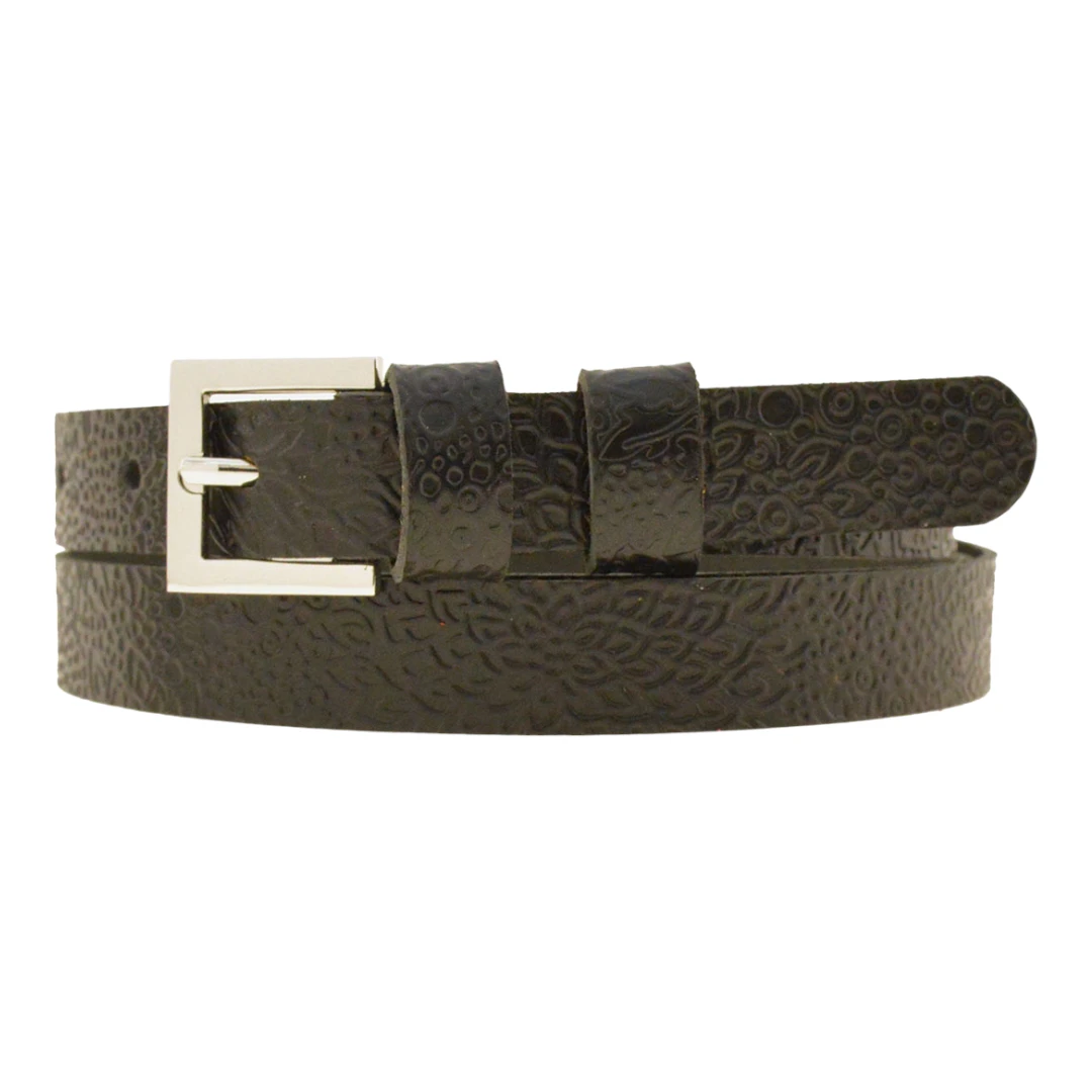 Δερμάτινη ζώνη Γυναικεία μαύρη φλοράλ με ασημί αγκράφα 2 εκατοστά