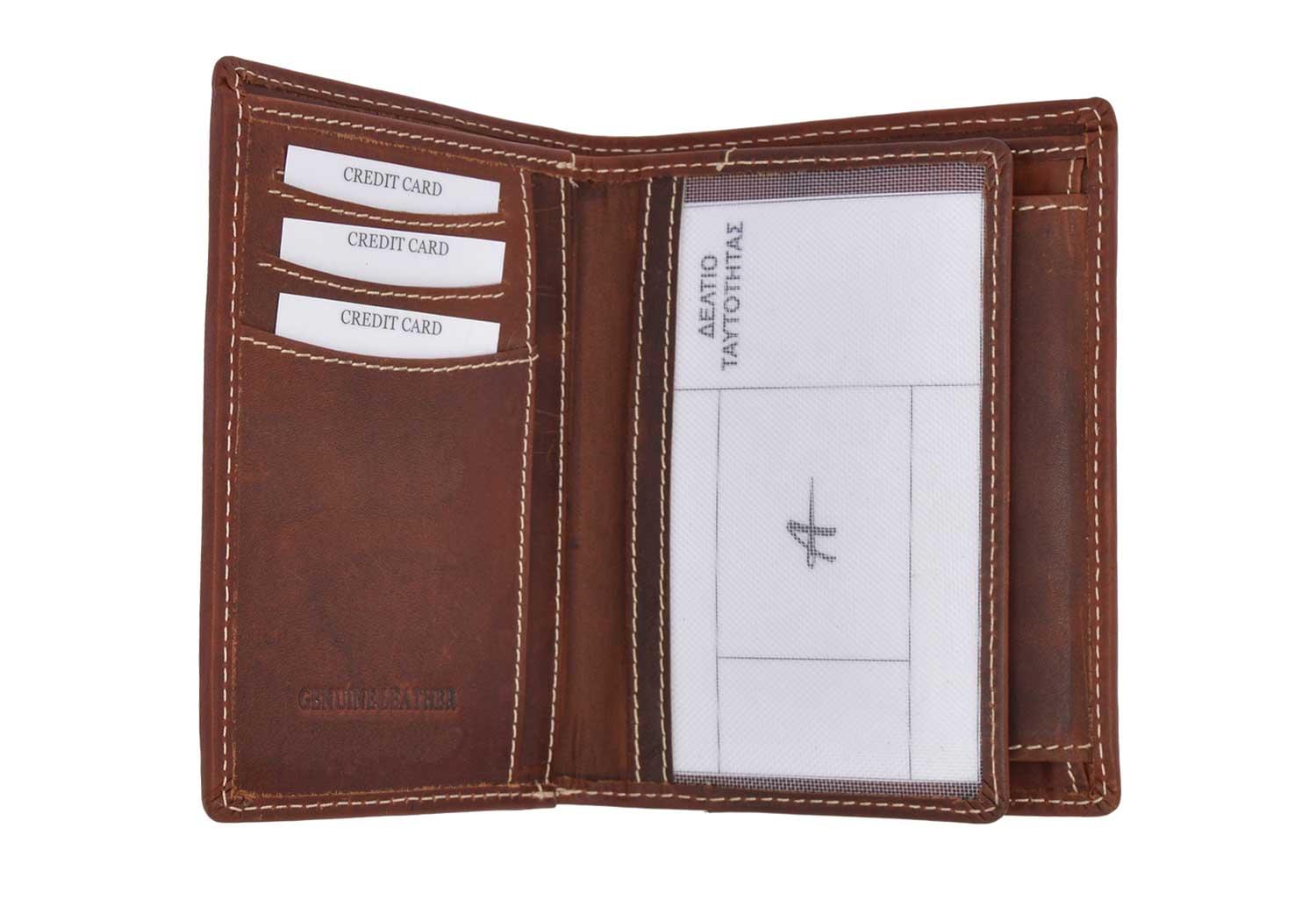 Ανδρικό δερμάτινο πορτοφόλι καφέ από φυσικό δέρμα μοσχάρι εξαιρετικής ποιότητας