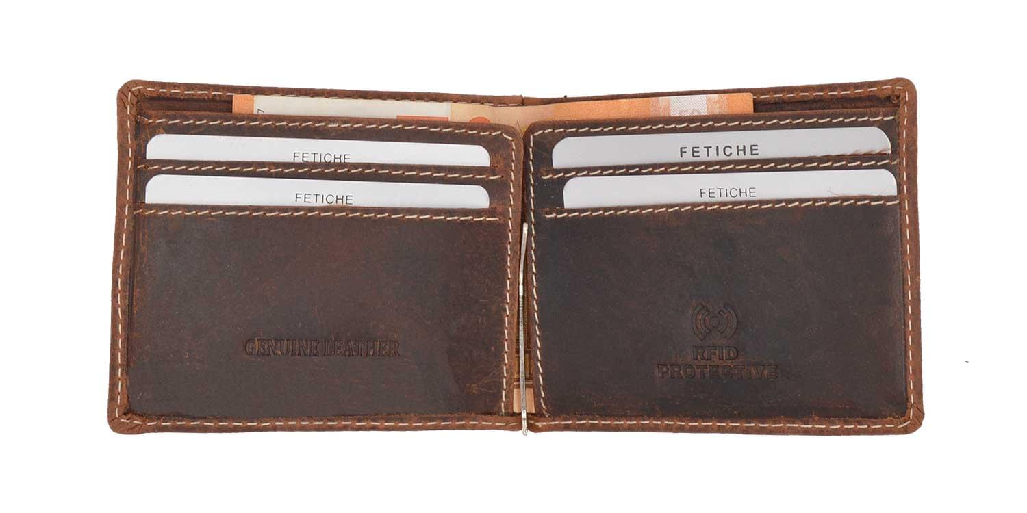 Ανδρικό δερμάτινο Πορτοφόλι καφέ με έλασμα χαρτονομισμάτων Fetiche HU-2668