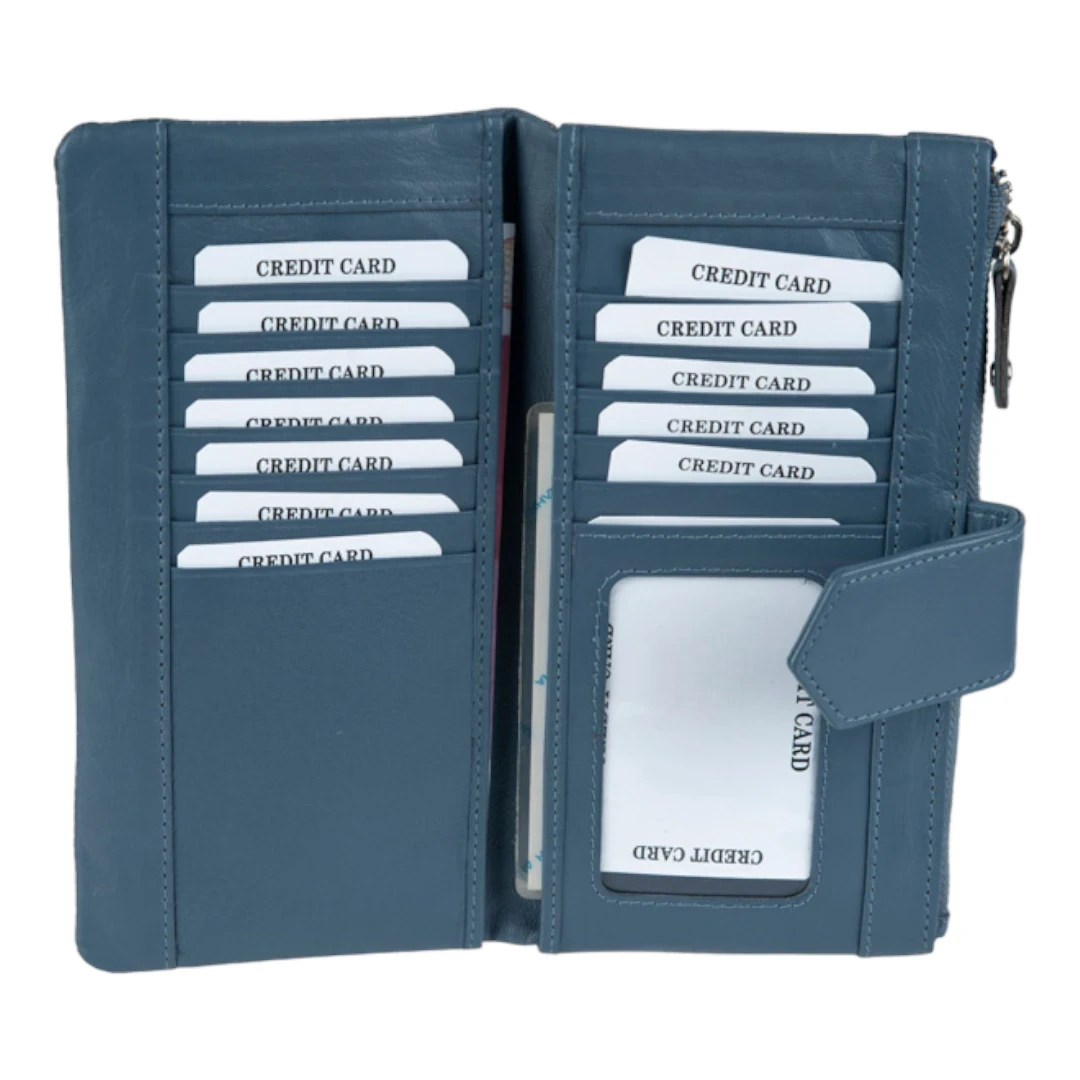 Γυναικείο Δερμάτινο Πορτοφόλι Μεγάλο Μπλε Fetiche Leather 3-6780