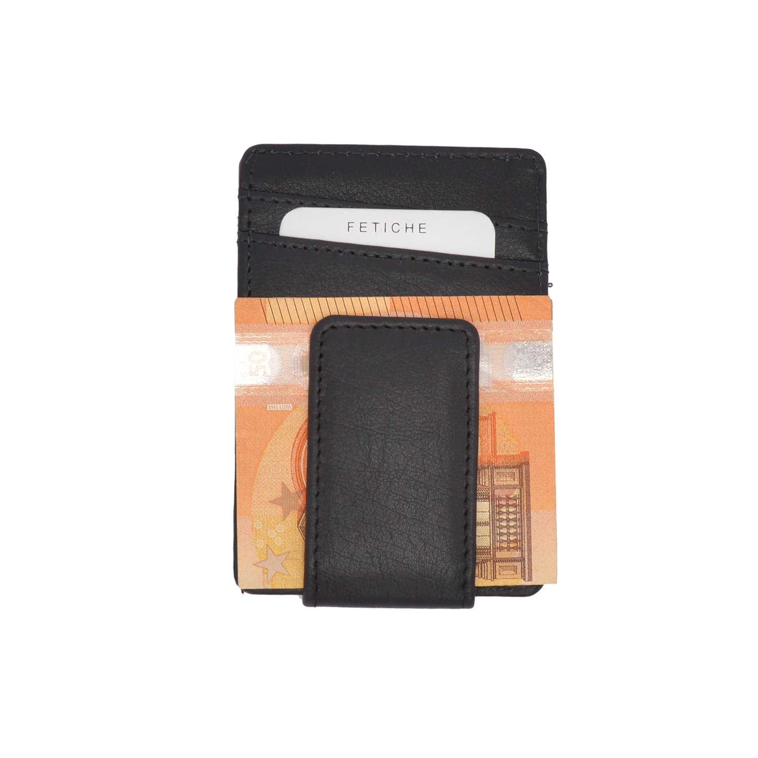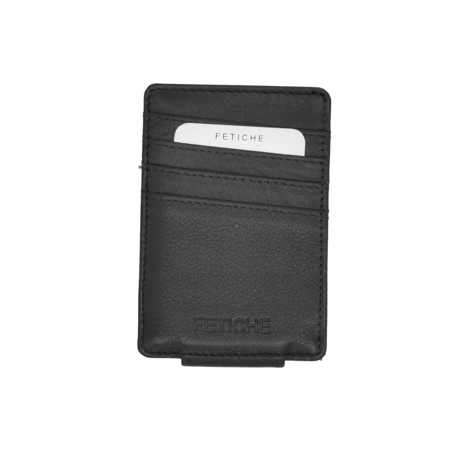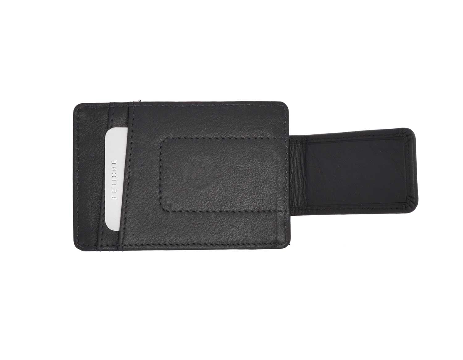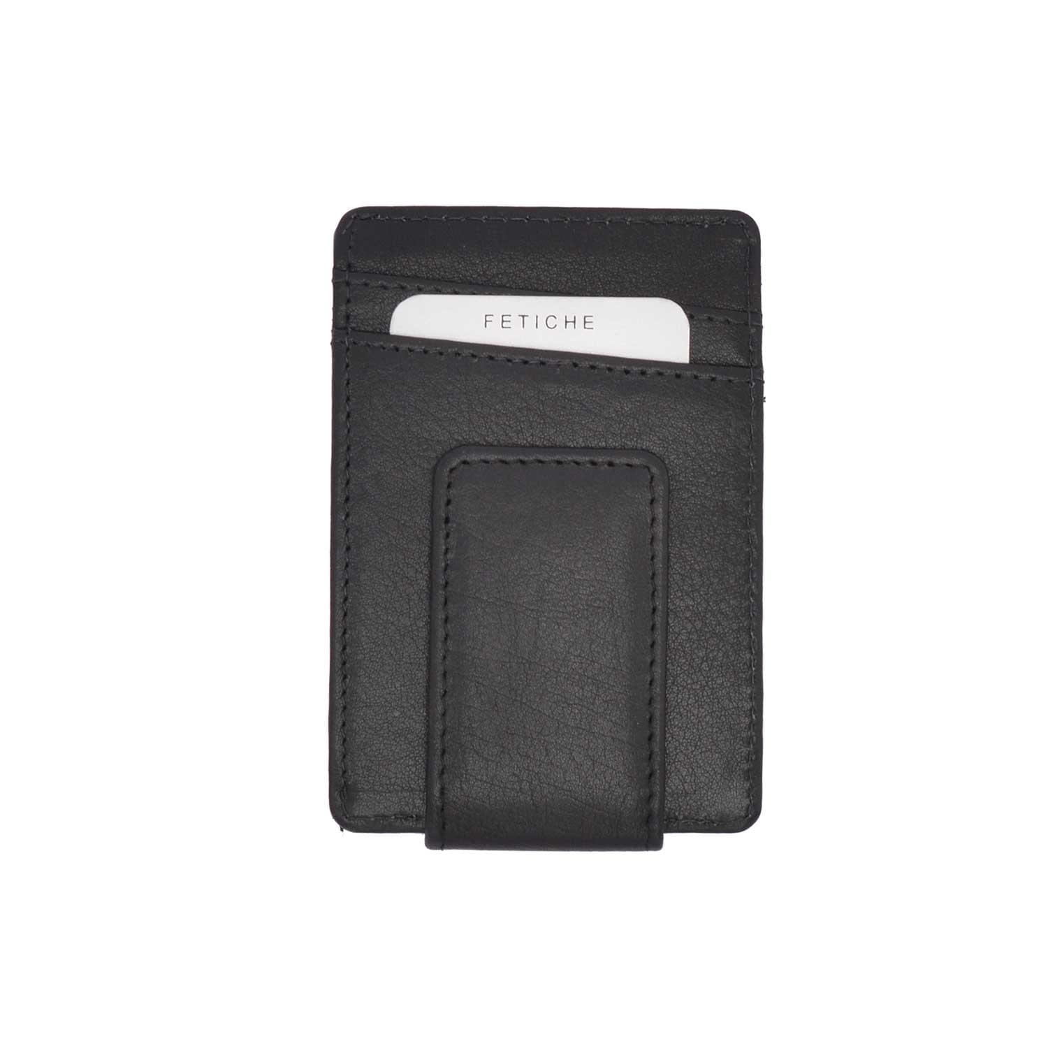 Ανδρικό δερμάτινο πορτοφόλι / καρτοθήκη μαύρο με μαγνητικό κλιπ Fetiche VE-2669