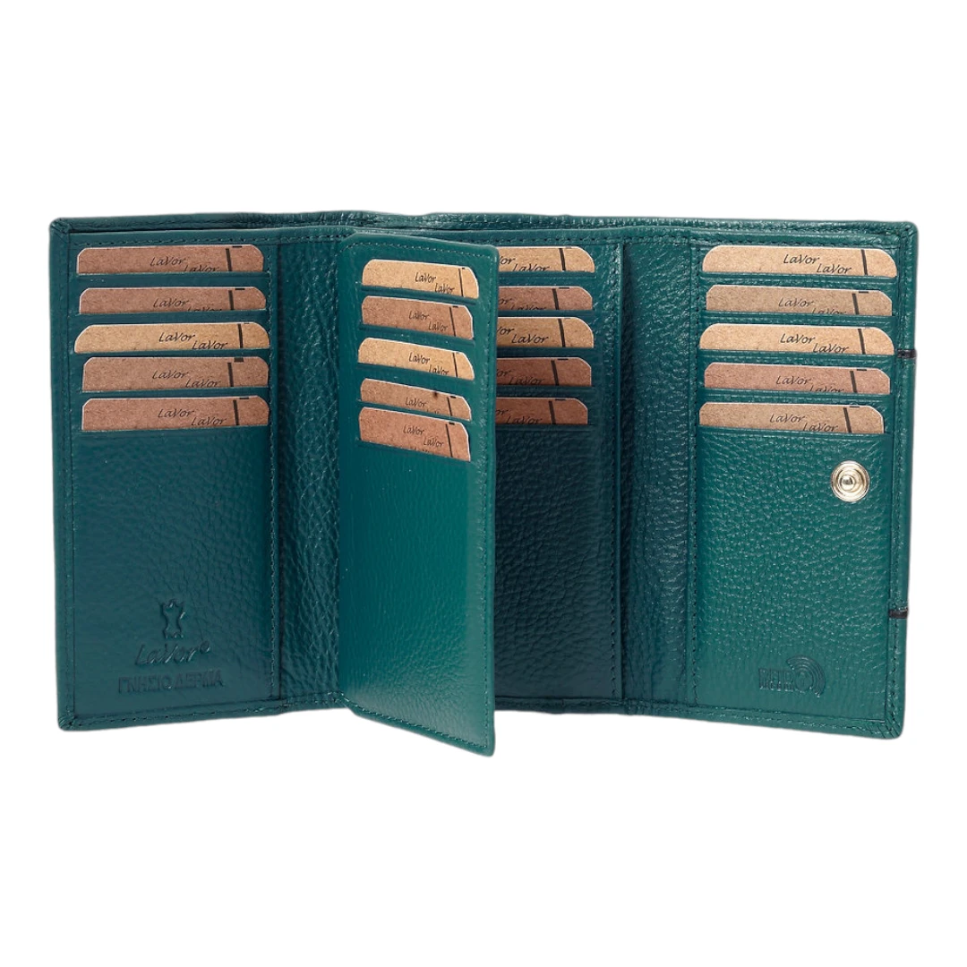 Lavor Δερμάτινο Γυναικείο Πορτοφόλι με RFID Τιρκουάζ 6075