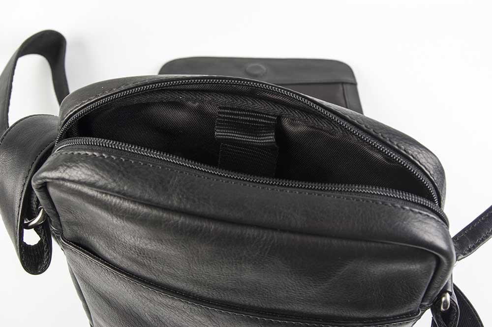 Τσάντα δερμάτινη ανδρική ώμου – χιαστί μαύρη SAK-7019