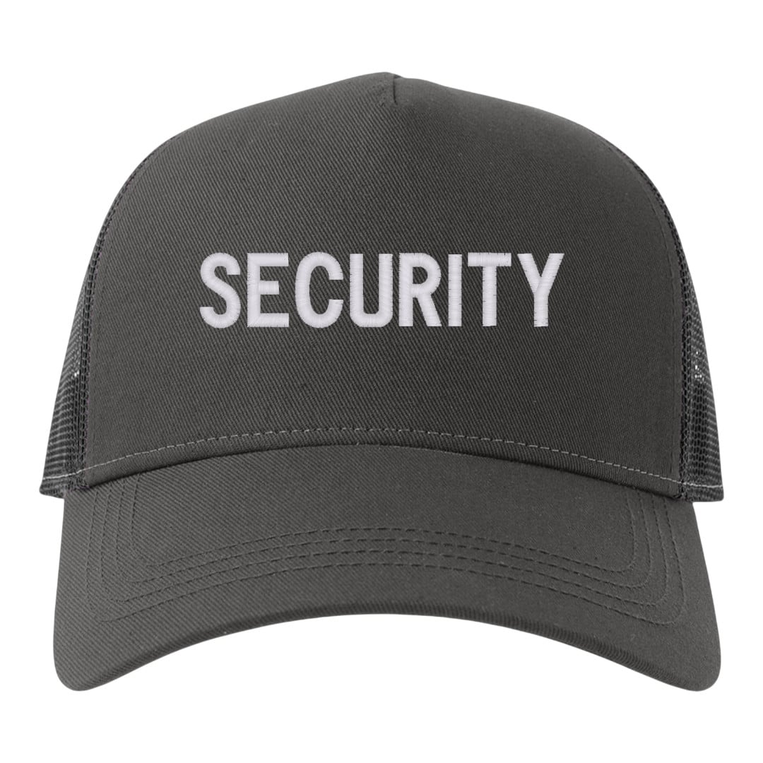 Καπέλο Trucker μαύρο με κεντημένο σχέδιο security με λευκή κλωστή.