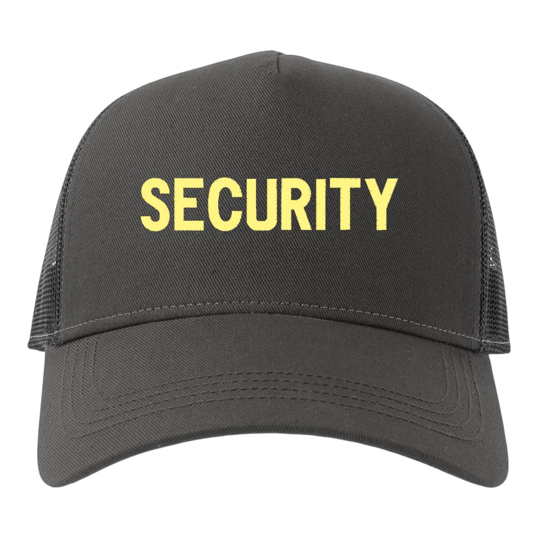 Καπέλο Trucker μαύρο με κεντημένο σχέδιο security με Κροκί κλωστή.