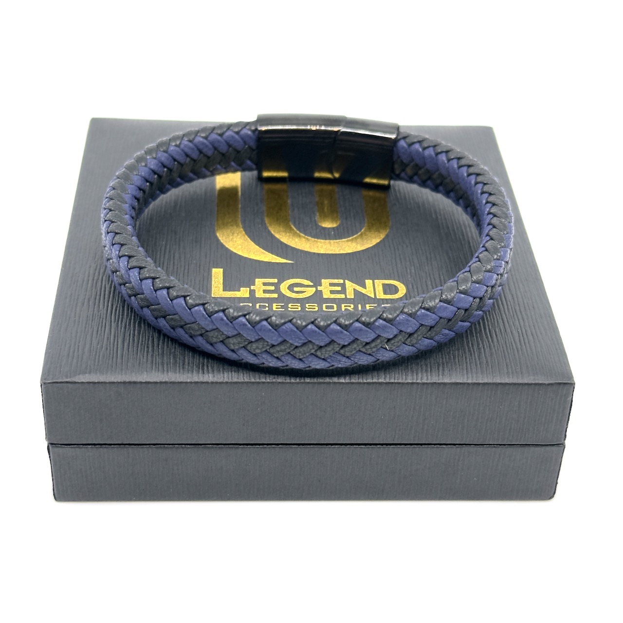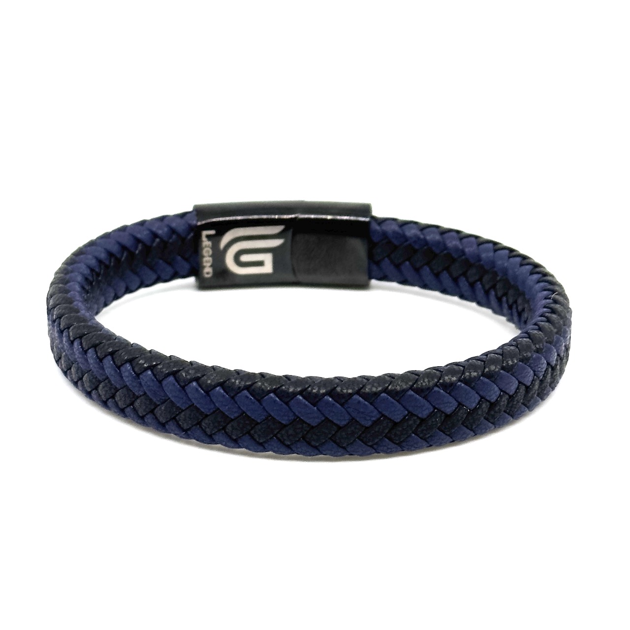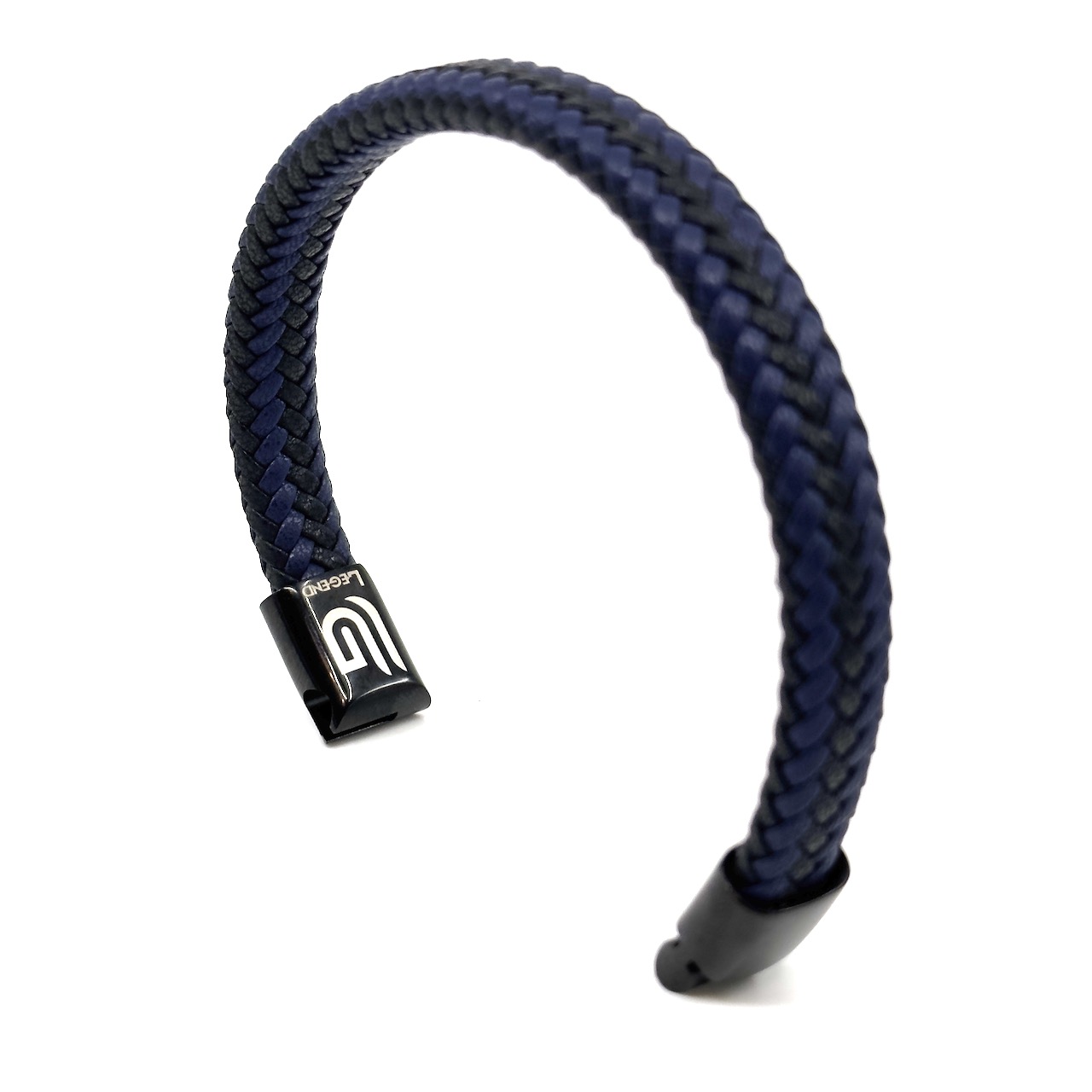 Βραχιόλι δερμάτινο πλεγμένο Μαύρο με Μπλε και Μαύρη μαγνητική πόρπη από ανοξείδωτο ατσάλι για ασφαλές και εύκολο κούμπωμα.